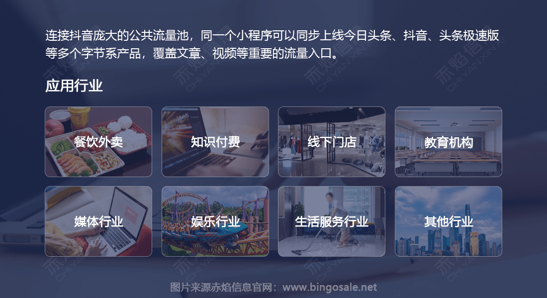 連接抖音龐大的公共流量池,同一個小程序可以同步上線今日頭條、抖音、頭條極速版等多個字節系產品,覆蓋文章、視頻等重要的流量入口。